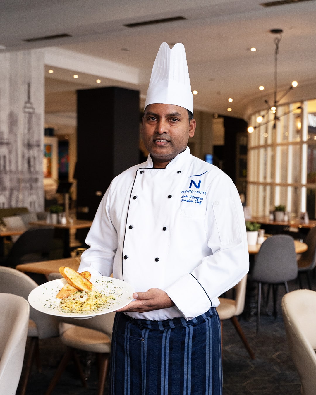 At Café Nicole, located inside Novotel Toronto Centre, every dish begins with a story — one rooted in family, tradition, and a lifelong love of cooking. Behind the menu is Chef Asok Tharumalingam, whose culinary journey started long before professional kitchens, shaped by childhood memories, home-cooked meals, and a deep respect for hospitality.